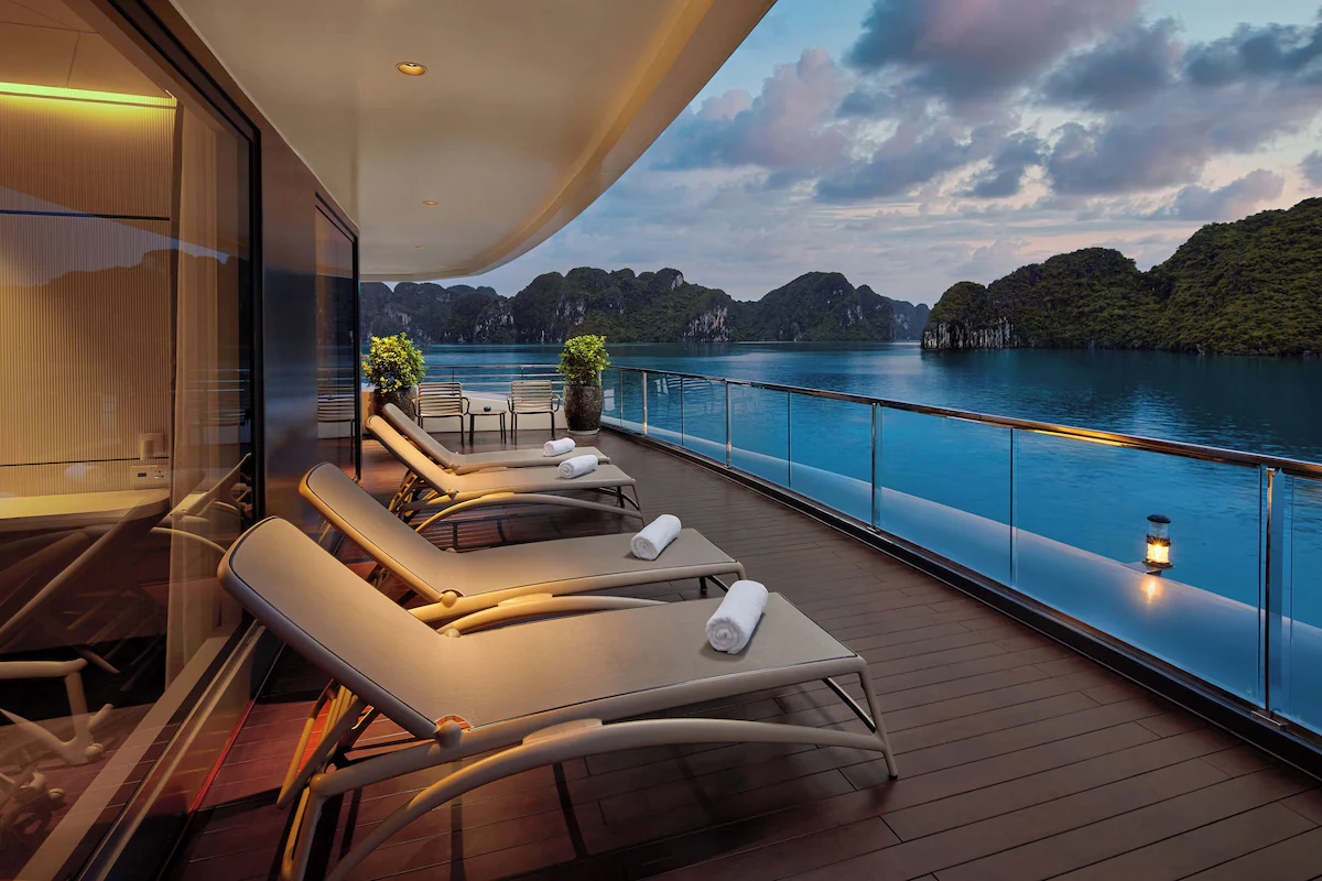 沉浸式巡遊越南世界遺產:【Grand Pioneers Halong Bay Cruise】是一艘結合法式優雅與現代極簡的精品郵輪,航行於越南下龍灣的壯麗水域。不同於傳統郵輪的擁擠與浮誇,它更像是一座會漂浮的精品旅宿,每一處細節皆為了打造「專屬、寧靜、沉浸式」的奢華旅程。全船僅 20 間套房,所有房型皆配備私人陽台與全景落地窗,讓旅人能在山海間迎接日出、與晨霧共眠。