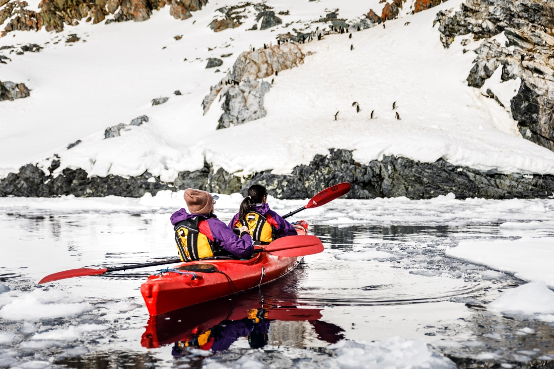 極地Kayak獨木舟~享受身心靈沉浸在寧靜簡約的藍白二色世界,呼吸新鮮純淨的空氣,近距離欣賞令人驚嘆的巨大冰層,自由自在划行在一塊一塊可愛的浮冰之間,並駛近小船無法進入的冰山隧道。所有的Kayak獨木舟均由經過認證且經驗豐富的導遊帶領,且會提供合適的救生衣。