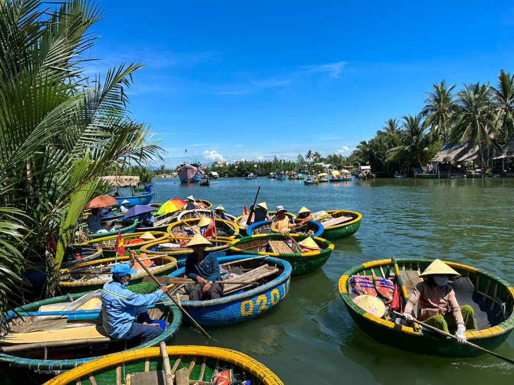 在迦南島可以搭乘傳統的竹桶船(又稱簸箕船、碗公船或竹籃船),這些船隻由竹條編織而成,堅固且具有美感。每艘船通常可容納兩位乘客,由經驗豐富的船伕掌舵,帶領您穿梭於椰林水道之間,享受自然風光。船伕會展示高速旋轉竹桶船的特技表演,這是迦南島的特色活動之一。在船上,還可以嘗試釣螃蟹,增添旅途樂趣。