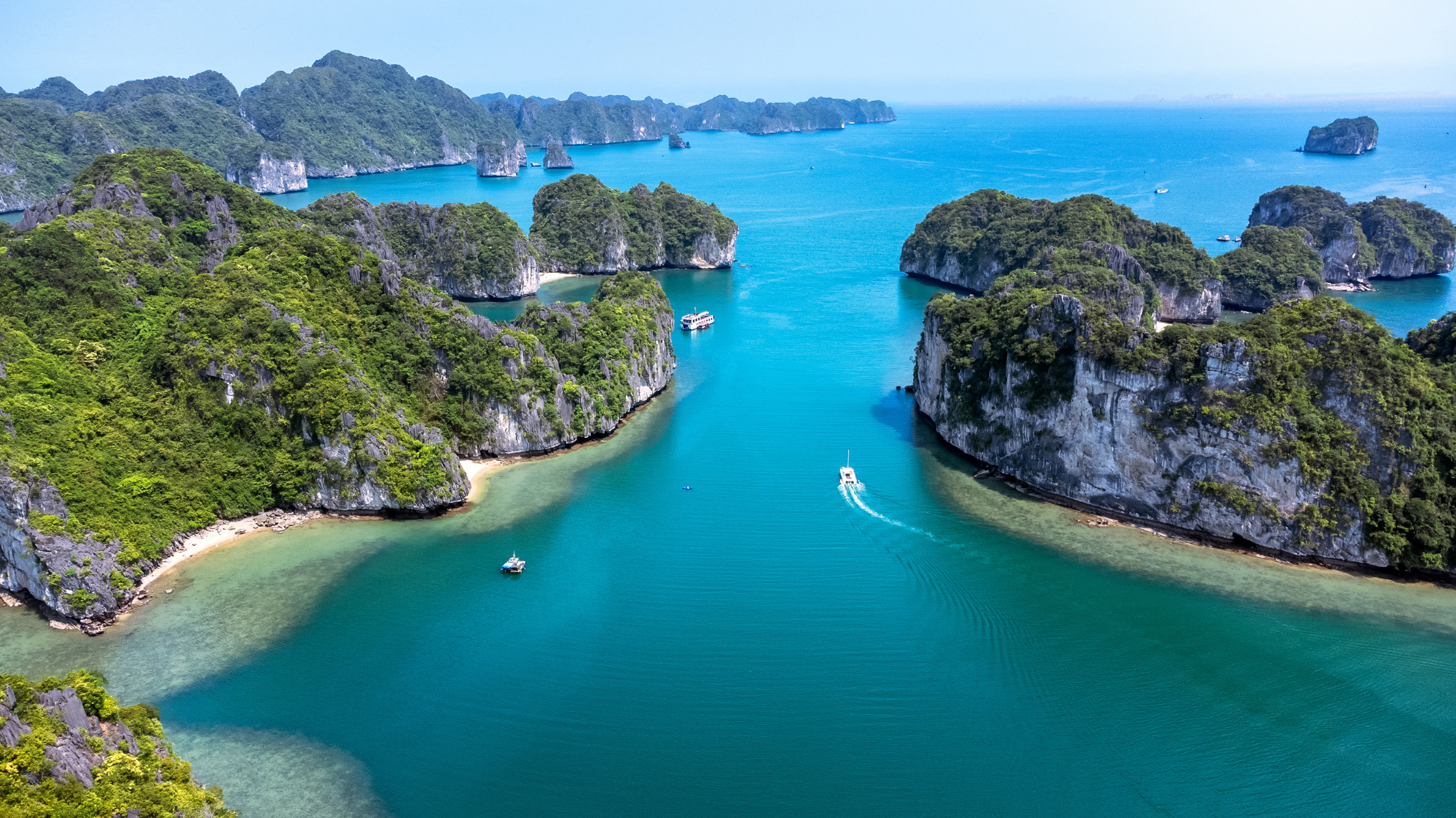下龍灣海豚號郵輪 Dolphin Day Cruise 是越南下龍灣最新穹頂豪華日遊船,於2025年首航,以6星級設施和歐美派對風格重新定義一日遊體驗。船體龐大可容納近700人,融合現代越式美學與世界級娛樂,完美結合自然探索與高端休閒。配備200平方米露天穹頂舞臺,提供DJ泳池派對、燈光秀與現場音樂,陽光甲板有越南最大四季漂浮泳池。餐廳供應逾100道亞歐自助海鮮午餐,酒吧與水療室增添奢華氛圍,適合家庭或年輕族群。